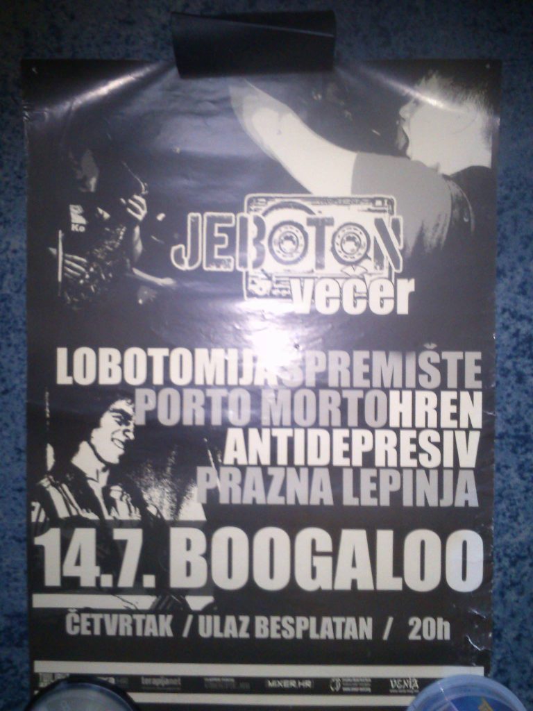 Prvi jeboTon program ikad održao se u klubu MMC Črnomerec 22.3.2011. te su nastupili Antidepresiv, Hren i Spremište, a uz to je izdana i prva kompilacija s nekoliko pjesama od svakog benda. U kratkom periodu kolektivu se pridružuje i Lobotomija, a nedugo nakon toga, 30.4.2011., navedeni i mnogi drugi bendovi nastupali su na Mikulići Demo Legende festivalu, gdje se postojeći bendovi i članovi kolektiva povezuju s Praznom Lepinjom i Porto Mortom, koji zaključuju prvu postavu bendova okupljenih oko jeboTon kolektiva.